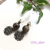 アンティークゴールドの透かしパーツとビーズのエスニックな雰囲気のピアスです♪