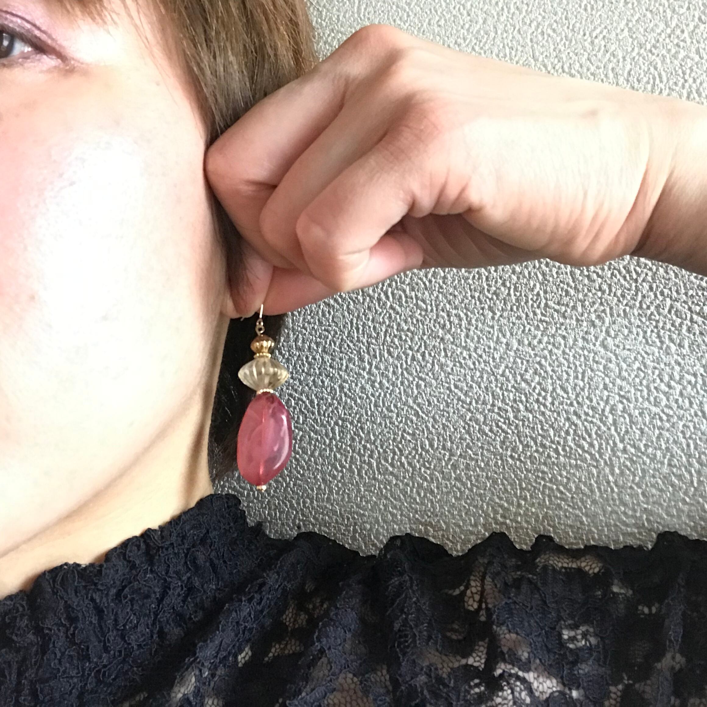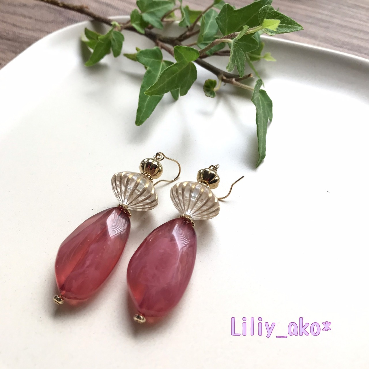透明感のあるクリアなビーズを使った涼し気な雰囲気のピアスです♪♪