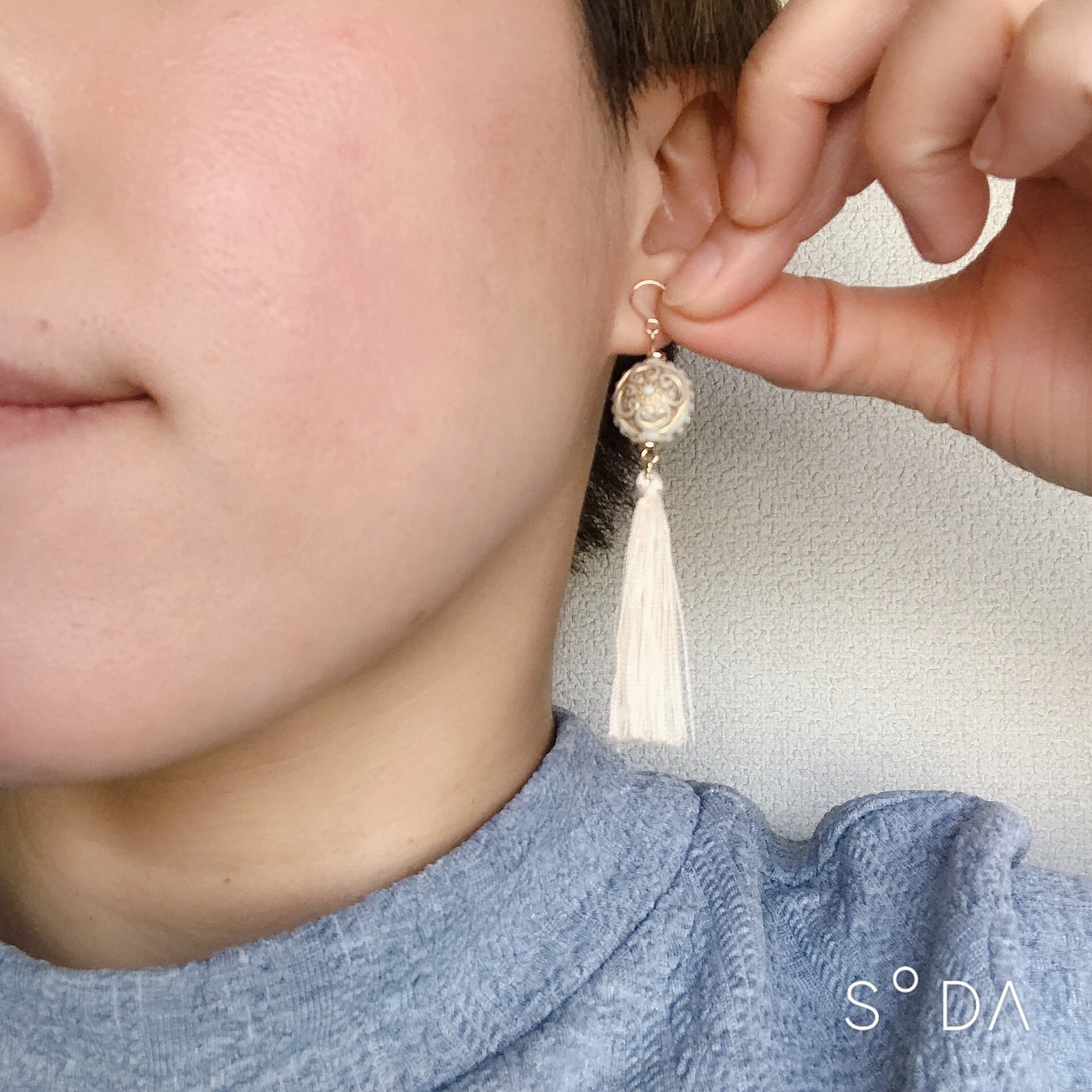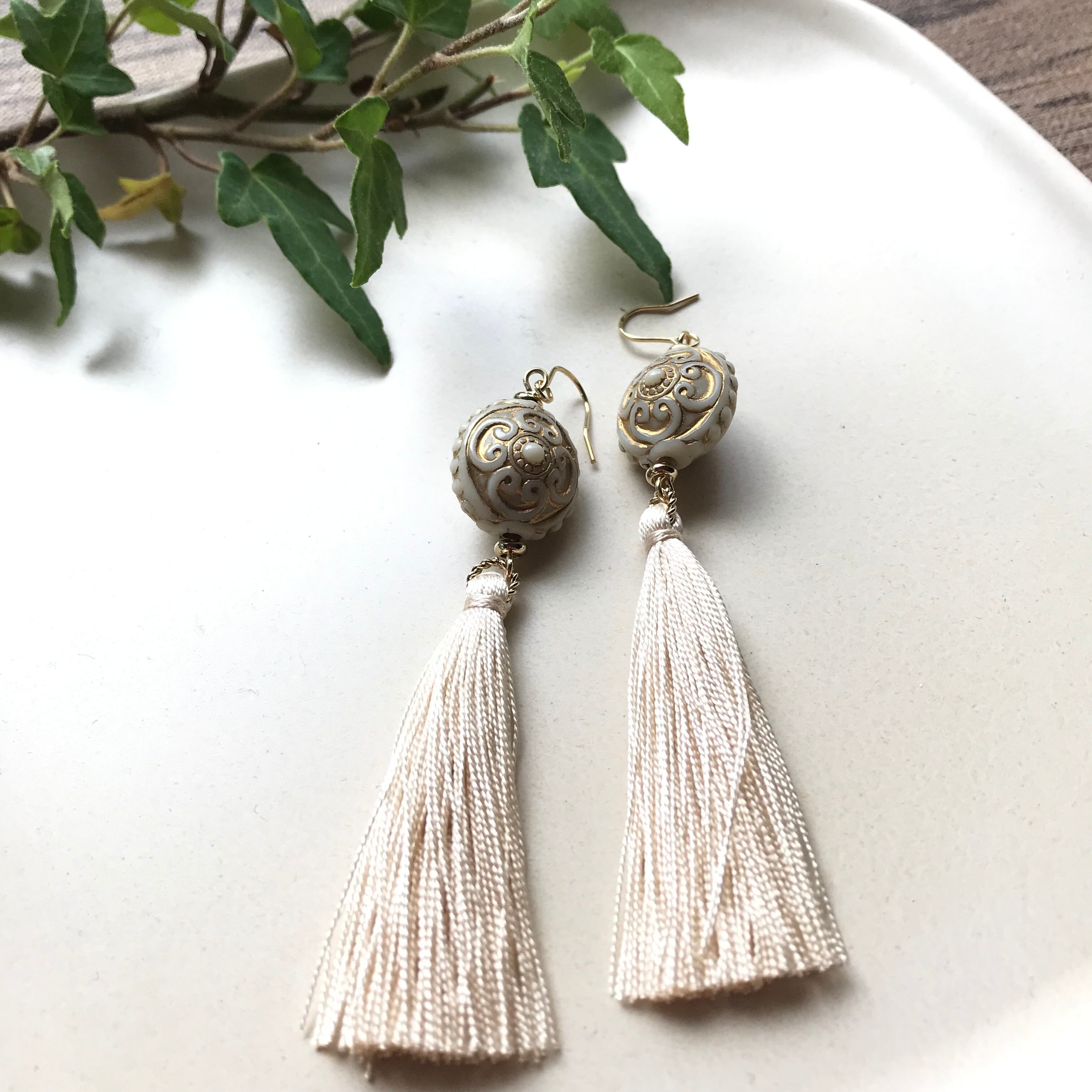 刺繍糸とは違うサラっとした質感のタッセルなので、大人っぽい雰囲気にも、エスニックな雰囲気にも、着物にも合うと思います(´∀`*)