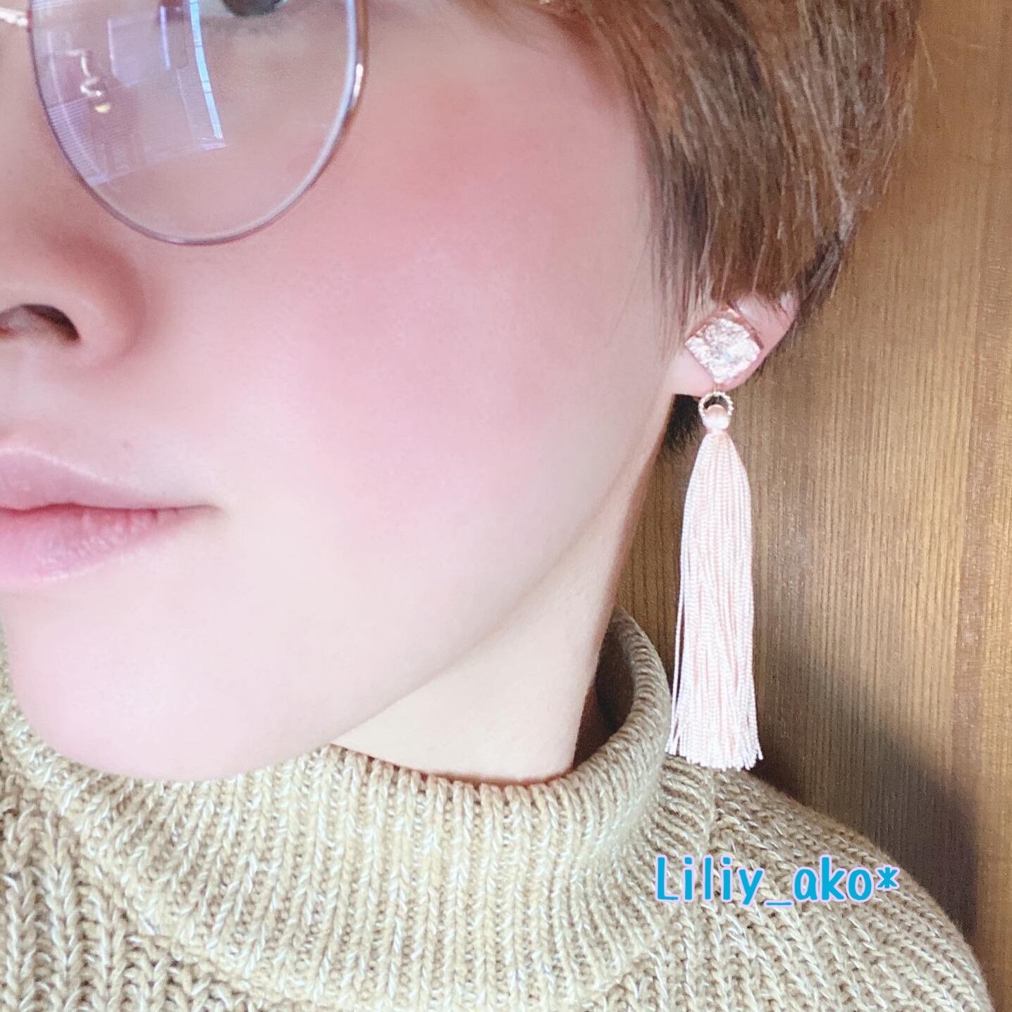 クリームオレンジのパーツと絹糸のタッセルを使って揺れるイヤリングになってます☆*°